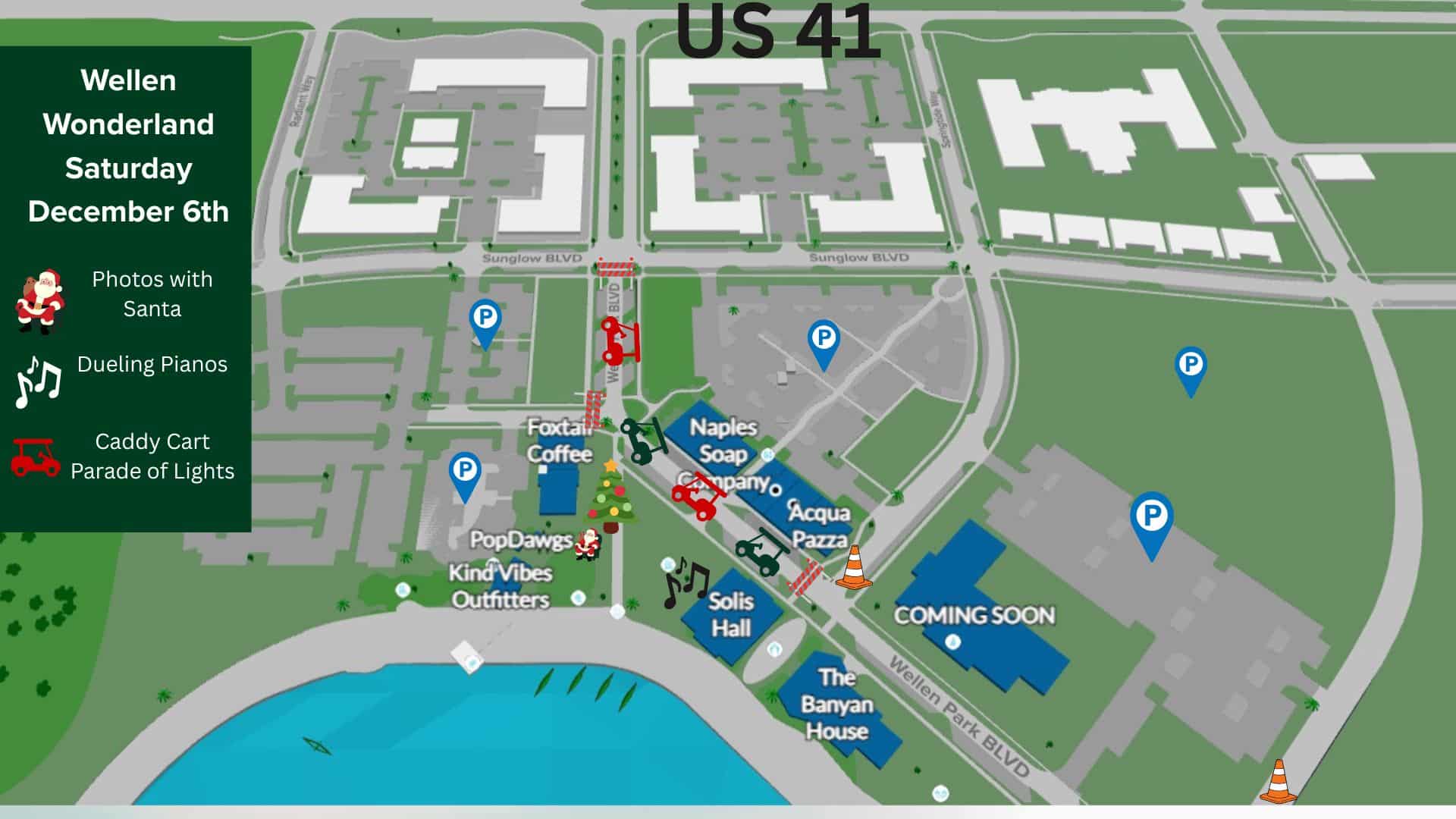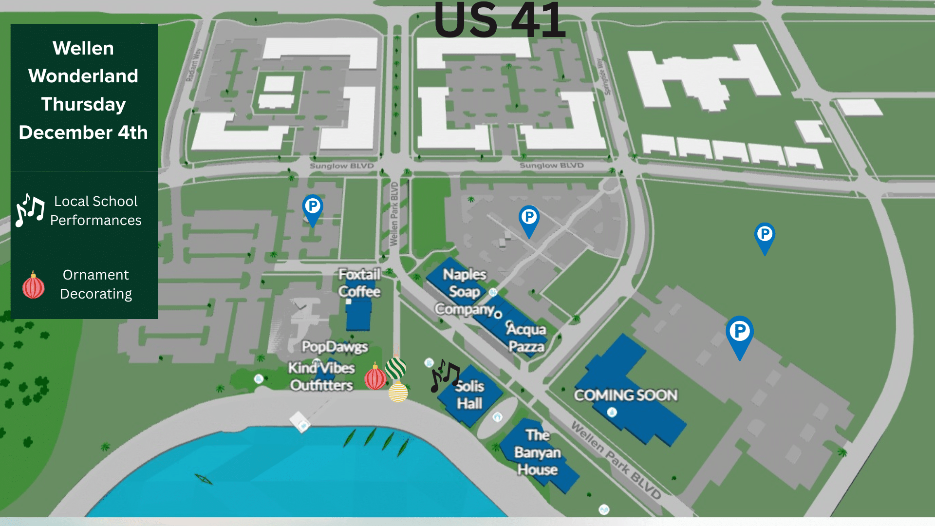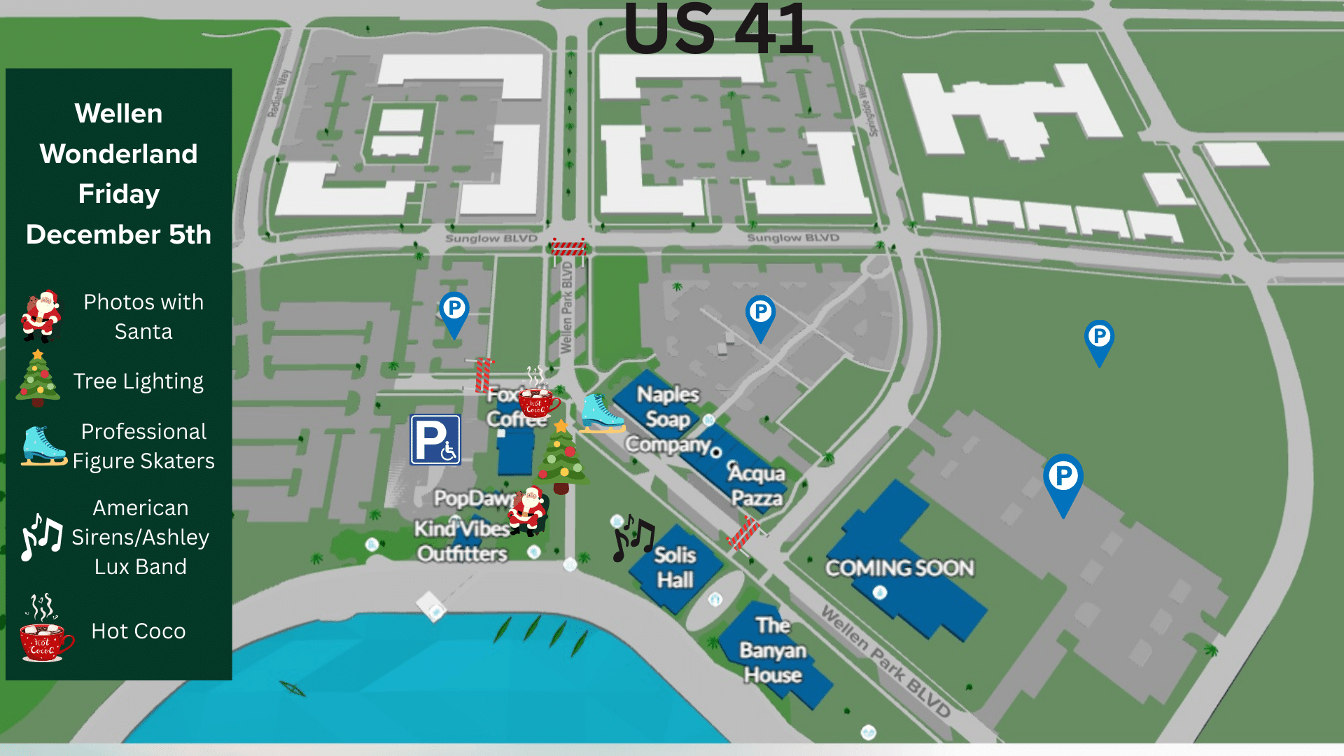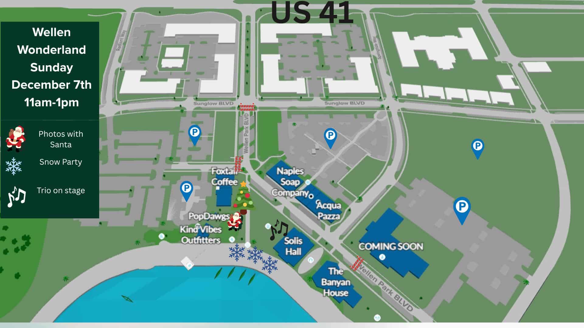 Gather the whole family for an unforgettable holiday celebration in downtown Wellen Park. Santa himself will be on hand to greet children, listen to wish lists, and pose for heartwarming photos that will become treasured memories. Throughout Wellen Wonderland enjoy enchanting live musical performances ranging from local school performances to the American Sirens, a band performance and even a holiday themed Dueling Pianos! Join your neighbors and friends around the Christmas tree for a spectacular lighting ceremony on Friday, December 5th. There is even more to look forward to; a snow party, glo bike ride and Caddy Carts Parade of Lights!